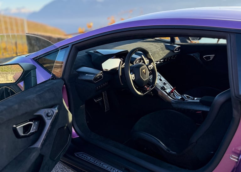 L’habitacle est une œuvre d’art, full carbone forgé, Alcantara, surpiqûres sportives et ambiance typiquement Lamborghini. Immersive, brute et luxueuse à la fois, la Performante offre un cockpit digne d’une voiture de course homologuée route.
